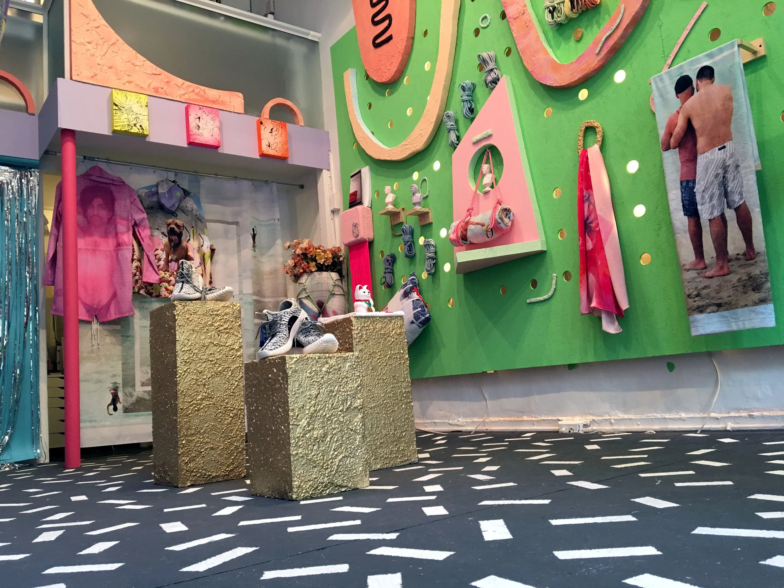 By beginning at, arguably, the most accessible point of entry for most elite art spaces - Gift Shop explores the unique sociocultural context of the museum gift shop environment - wherein the sacred and the mundane, the Mona Lisa and the coffee cup, become one. As ‘fine art’ increasingly isolates itself from the general public, drawing repulsion from the air of pretension necessary to maintain its integrity - Gift Shop serves as a gateway to supporting exceptional fine art by adapting the language of mass marketing, branding and cheap affordable commodification.