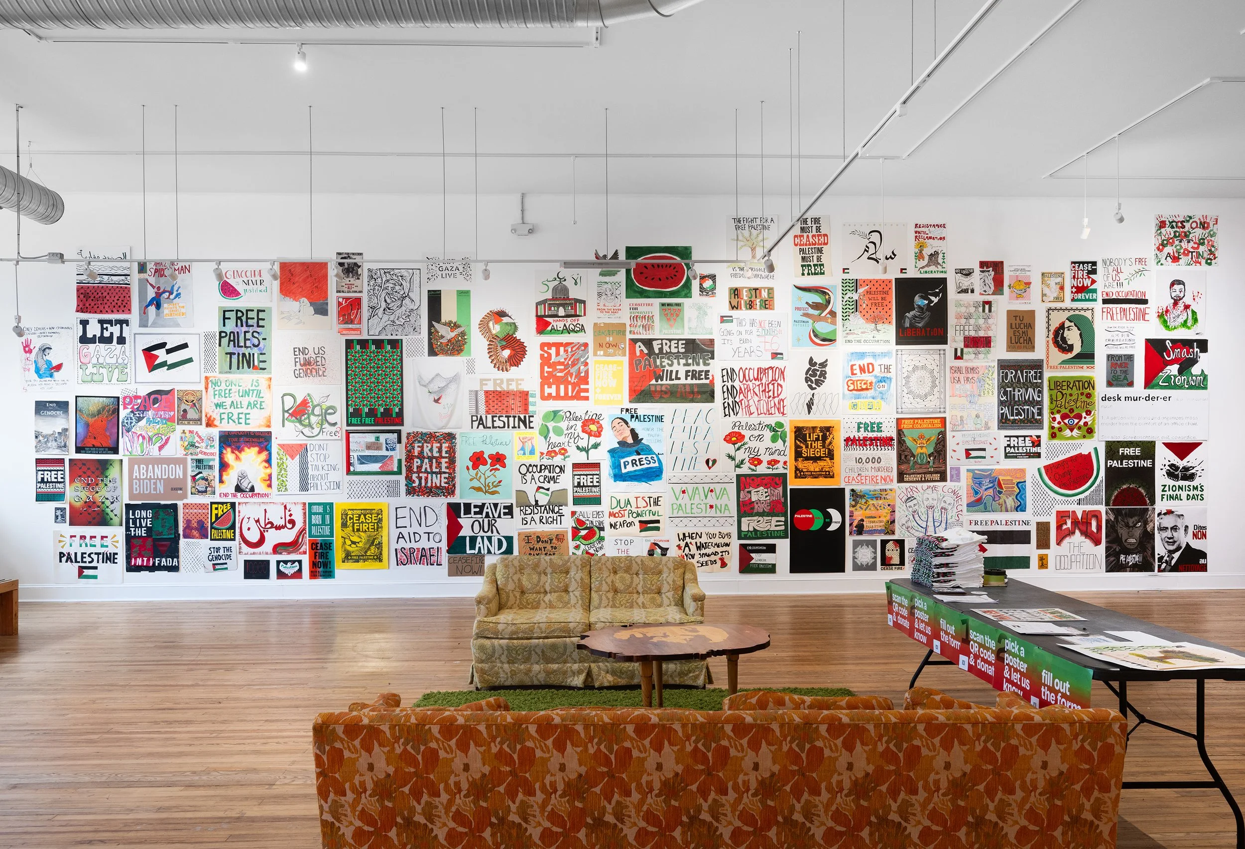 An Open Call Poster Exhibit featuring anonymous artists in solidarity with the People of Palestine against the genocidal seige of Gaza by the israeli occupation. All proceeds went to support Palestinian Youth Movement and Mutual Aid Efforts in Egypt for Gaza Refugees.